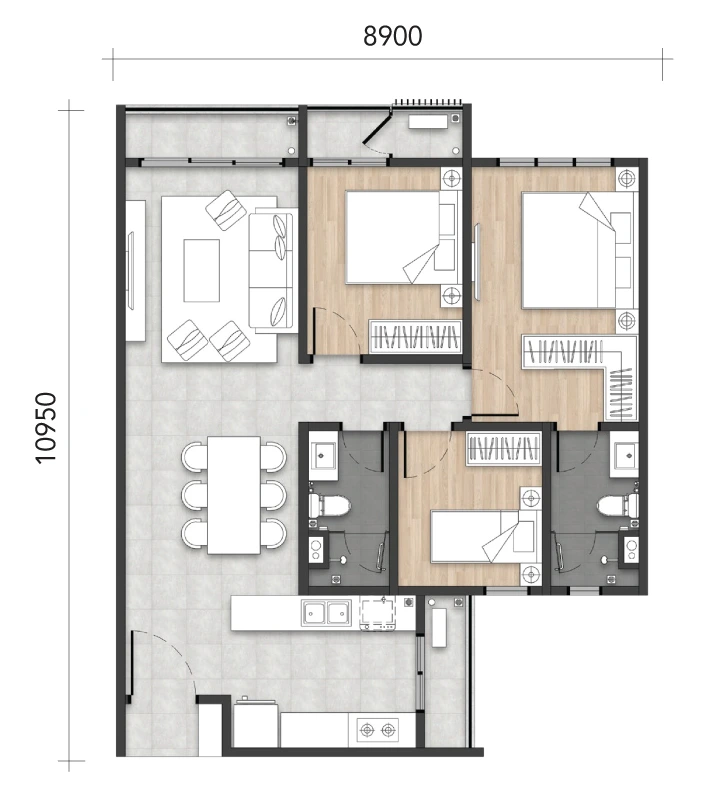 Practical layout from 655 sq.ft to 1,272 sq.ft